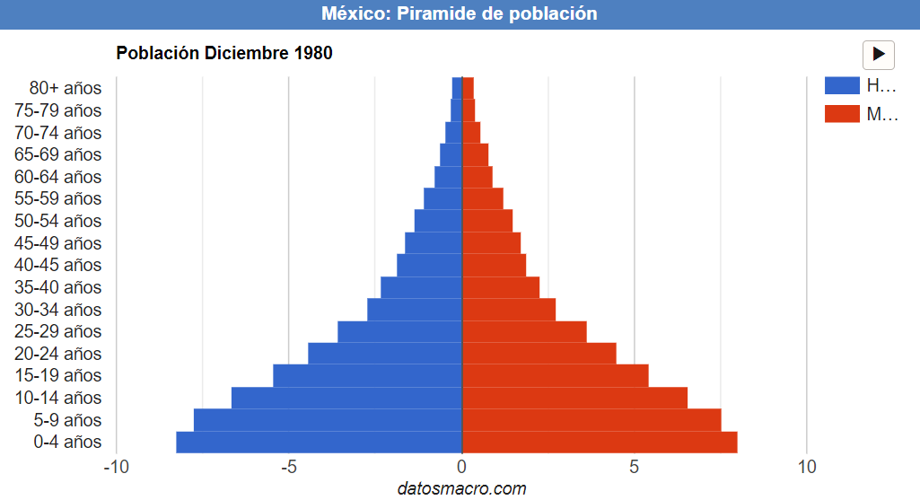 A continuación te presento la pirámide de población de 1980 vs 2019, en donde se puede ver el cambio demográfico en el país.